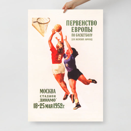 Vintage Soviet Basketball Poster - European Women’s Basketball Championship - Rare USSR Sports Art