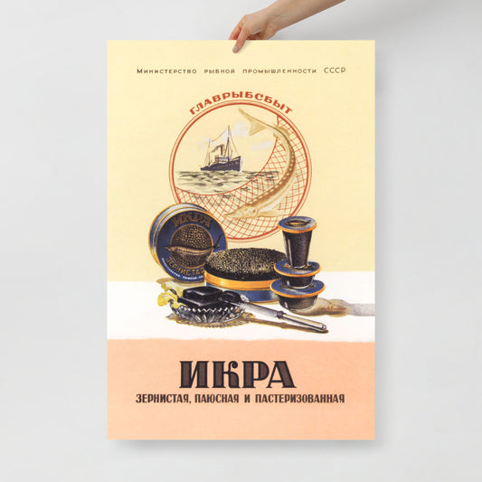 Vintage Soviet Caviar Poster - "Икра" - Rare USSR Food Advertising Art