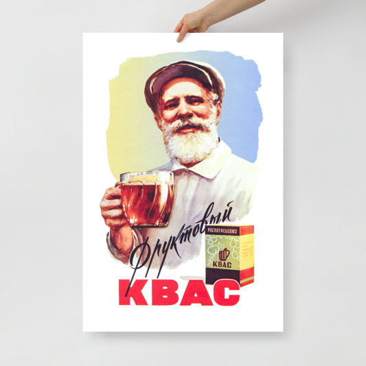 Vintage Soviet Kvass Poster - "КВАС" - Rare USSR Advertising Art