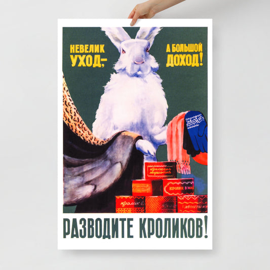 Vintage Soviet Agriculture Poster – Breed Rabbits!