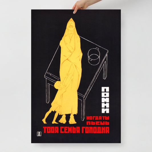 Vintage Soviet Anti-Alcohol Poster - Remember, When You Drink, Your Family Goes Hungry - Rare USSR Propaganda Art