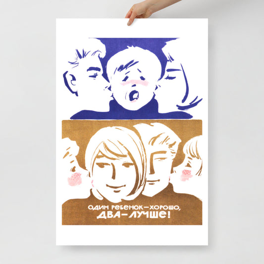 Vintage Soviet Family Poster - One Child Is Good, Two Are Better!