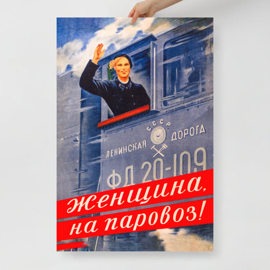 Vintage Soviet Propaganda Poster - "Женщина, на паровоз!" (Woman, to the Locomotive!) - Rare USSR Feminist Art