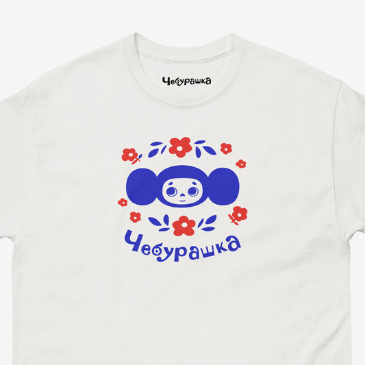 Cheburashka T-Shirt チェブラーシカ in Japanese – Soviet Cartoon Character with Flowers