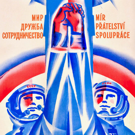 Original Vintage Soviet Propaganda Poster Cosmonauts Peace Czechoslovakia USSR