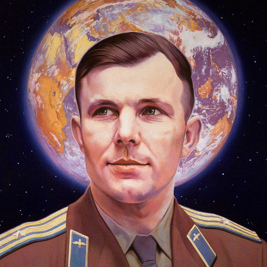 Yuri Gagarin Poster – Soviet Cosmonaut Icon with Earth Halo – USSR Space Art