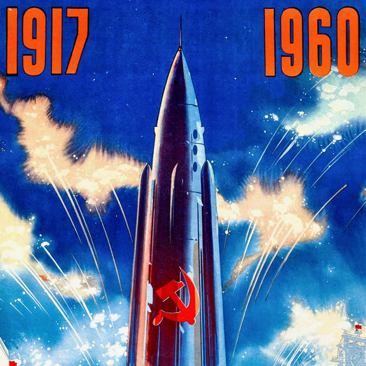 Soviet October Revolution Poster – Rocket Launch & Fireworks (Ultra Rare USSR Art)