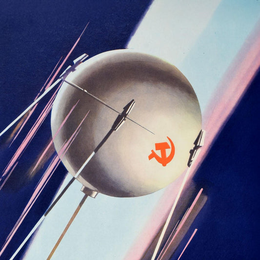 Vintage Soviet Space Poster 'Sputnik' Rare USSR Propaganda