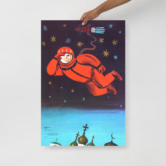 Rare Large Soviet Space Poster – Слава первому космонавту. Советской науке слава! – High-Quality Print