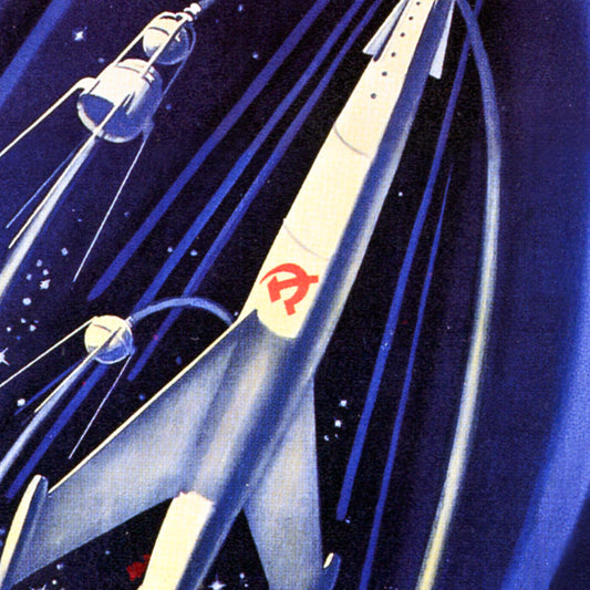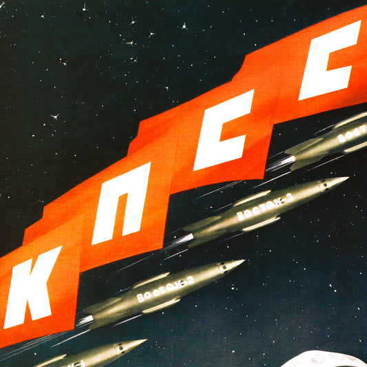 Rare Soviet Space Poster – "Во славу Коммунизма!" – Vostok Rockets, High-Quality Print