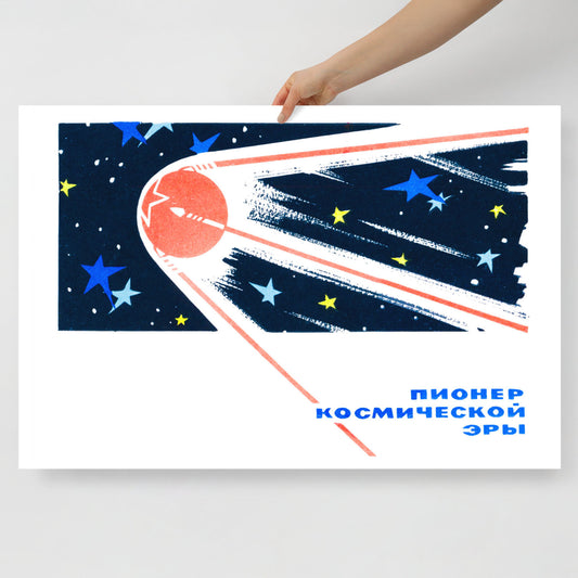 Soviet Space Poster – Sputnik Launch Motherland of Cosmonautics