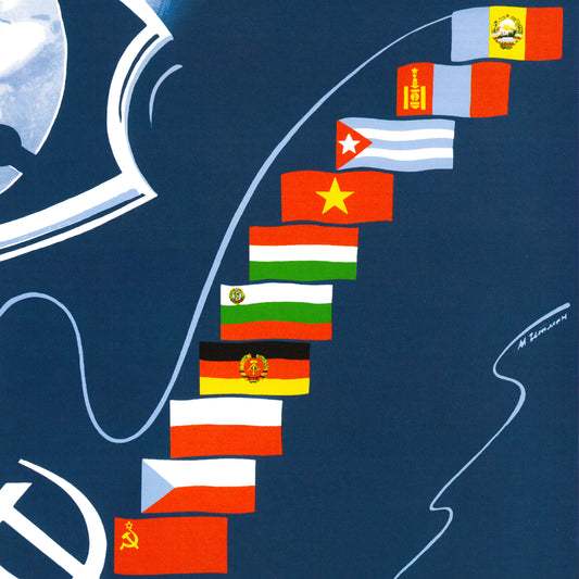 Soviet Space Poster – Gagarin & Communist Bloc Flags