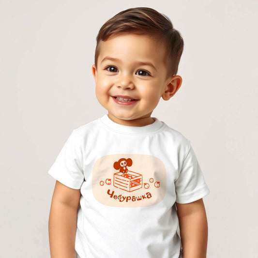 Cheburashka Baby T-Shirt – Classic Soviet Cartoon & Oranges Design