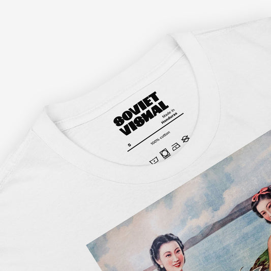 Sea Bath Chinese Shirt – 1940s Swimmers Poster Print, Shanghai Socialist Realism Tee