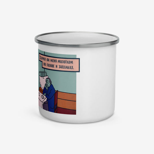 Viktor Pivovarov ‘He Hit Me with a Hammer’ Soviet-Style Design Enamel Mug