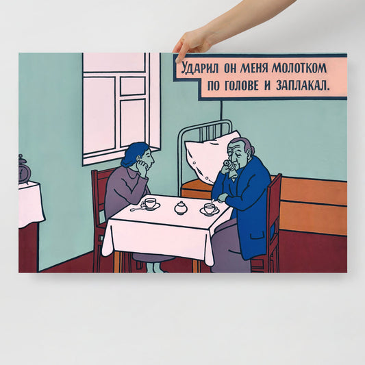 Viktor Pivovarov 'He Hit Me with a Hammer' Large Poster – Soviet Conceptualism