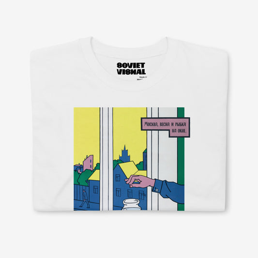 Viktor Pivovarov ‘Moscow, Spring and a Little Fish by a Window’ Art T-Shirt – Soviet Conceptualist Design – Premium Cotton