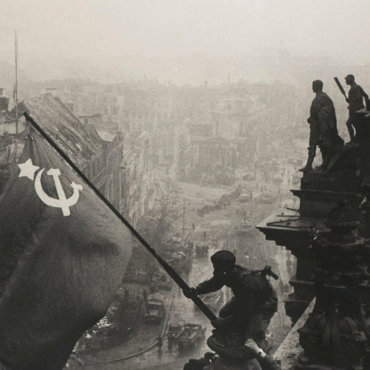 The Banner of Victory over the Reichstag 1945 – Iconic Soviet WWII Photo by Evgeniy Khaldei (Large Archival Poster)