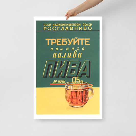 Soviet Beer Poster ‘Demand a Full Pour of Beer!’ (Требуйте полного налива пива) – Rare High-Quality Print – Vintage Soviet Advertising Art