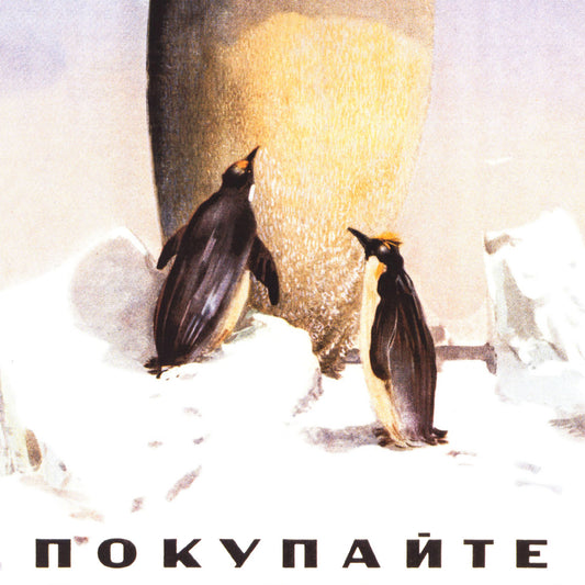 Buy Ice Cream! Soviet Food Poster – Charming Penguins Illustration