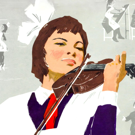 Soviet Violinist Girl Poster – Vintage USSR Art & Music Propaganda